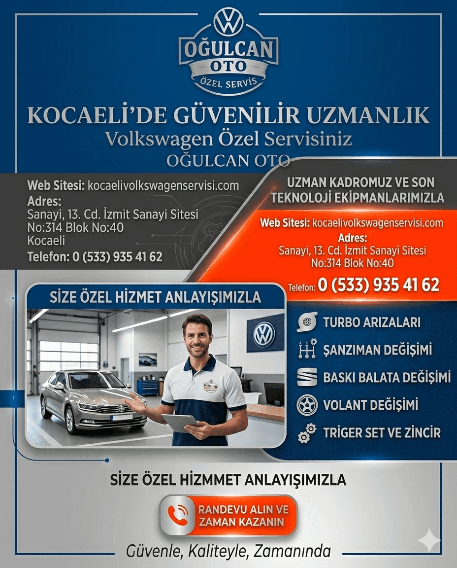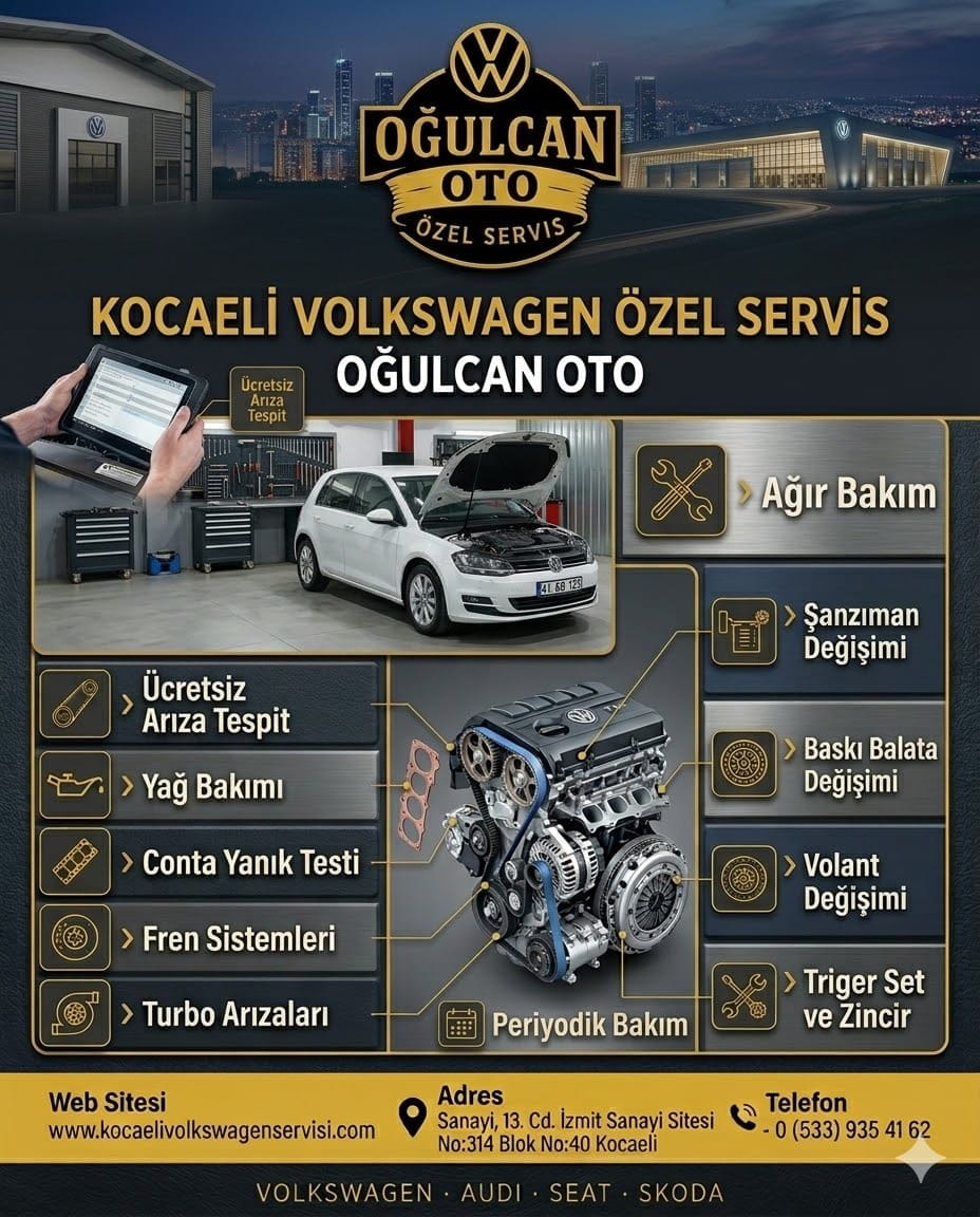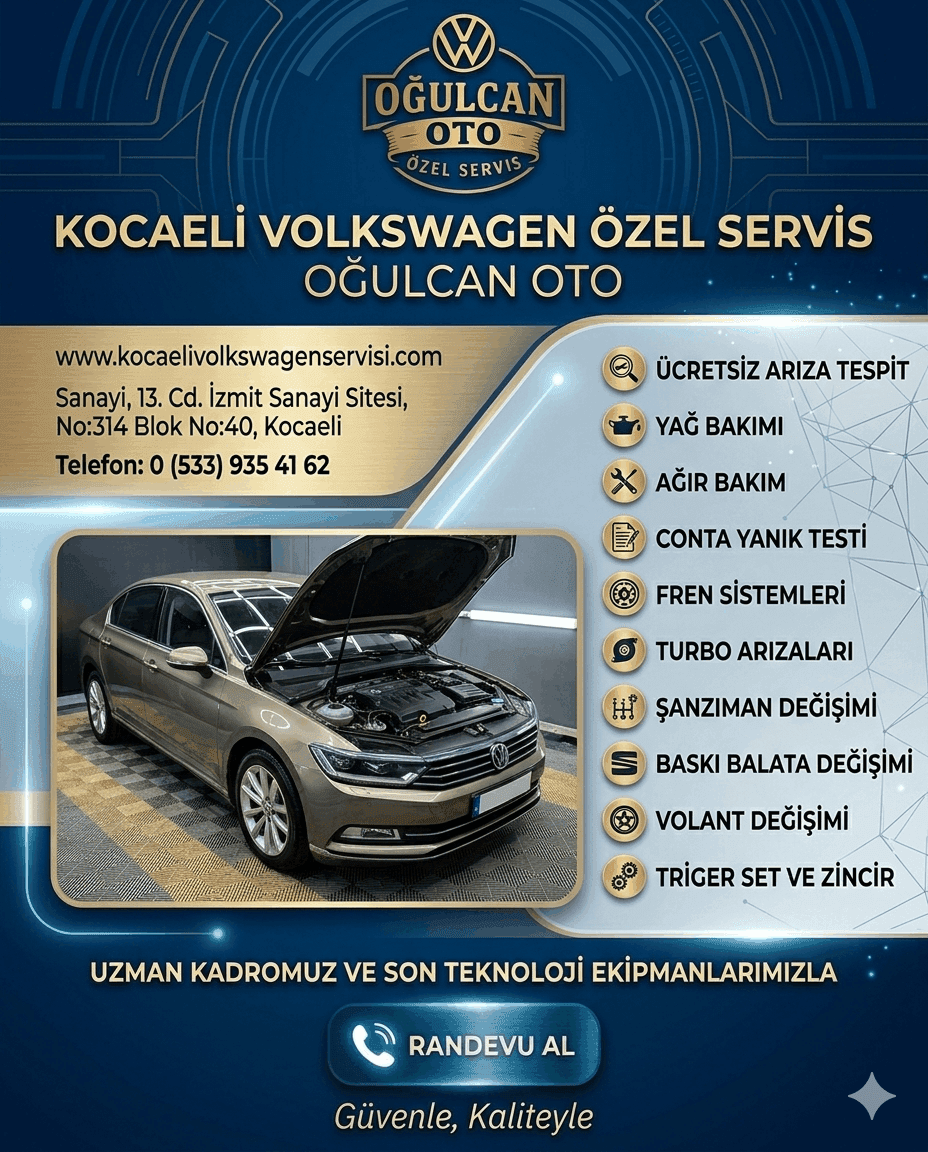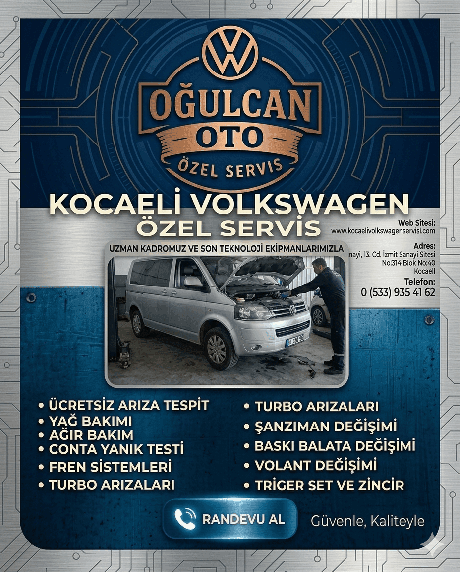 Kocaeli Volkswagen Servisi; periyodik bakım, mekanik onarım, arıza tespiti, fren ve süspansiyon işlemleri, motor bakımı ve genel servis hizmetlerini Volkswagen marka araçlara özel olarak sunmaktadır.