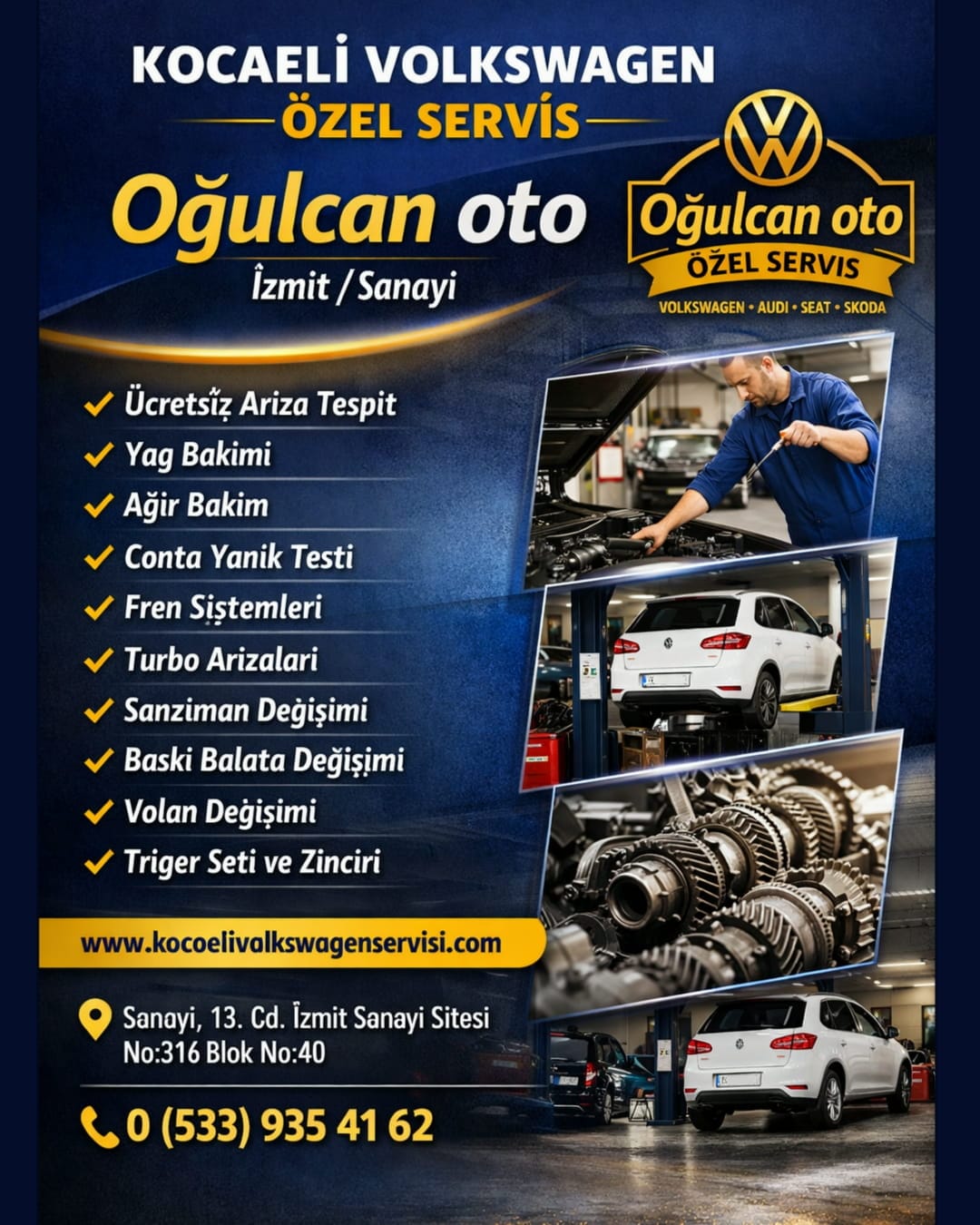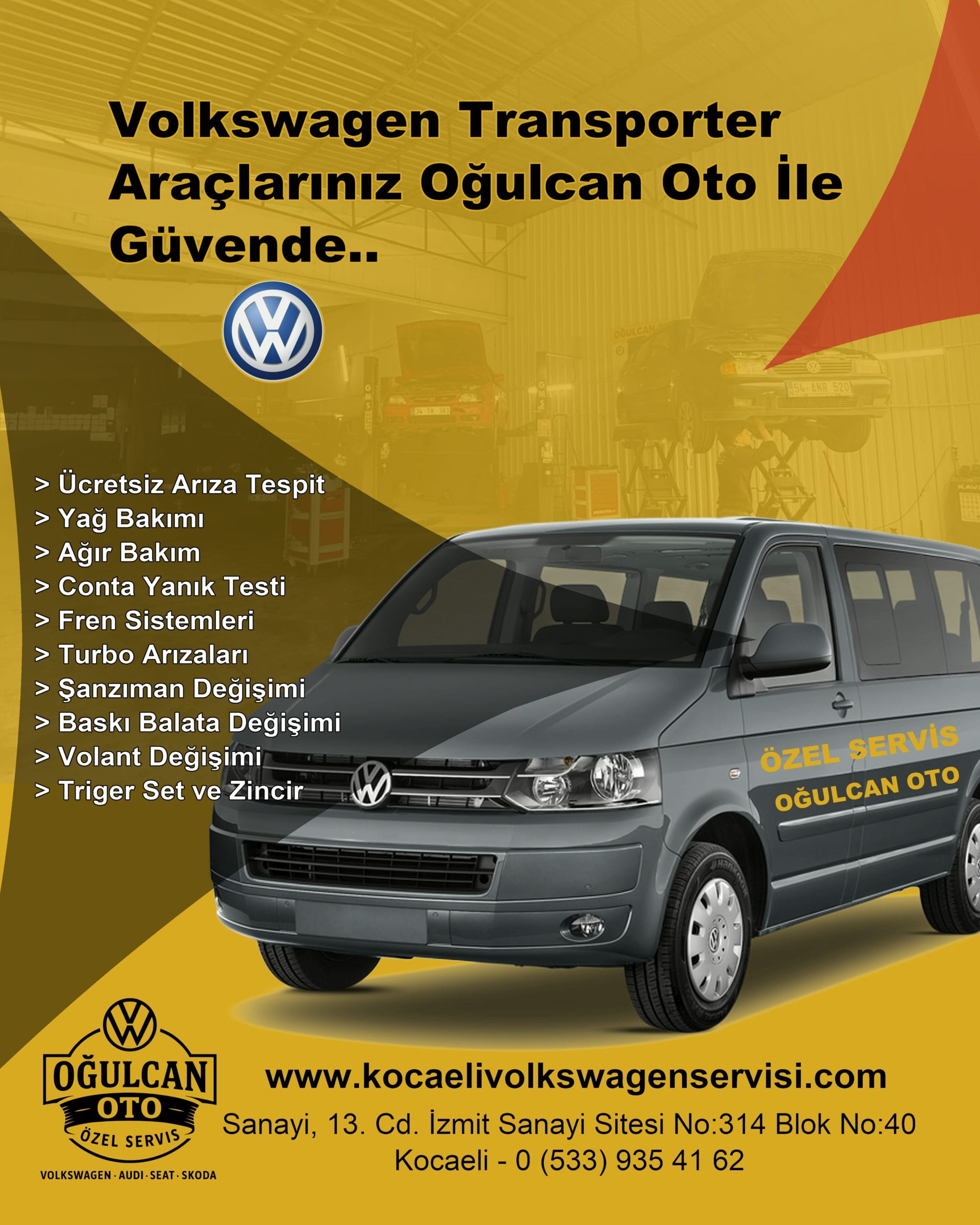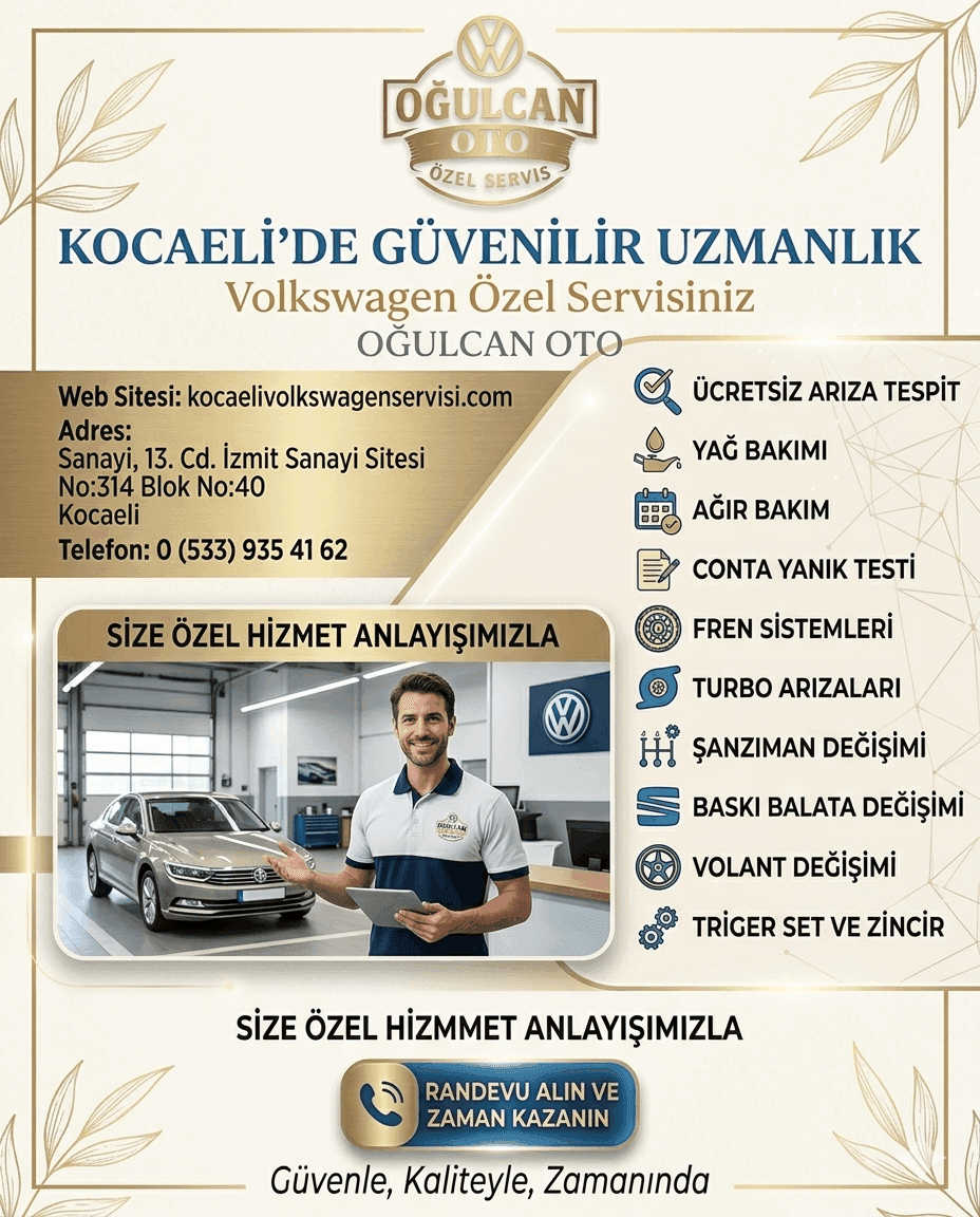 Kocaeli Volkswagen Servisi; periyodik bakım, mekanik onarım, arıza tespiti, fren ve süspansiyon işlemleri, motor bakımı ve genel servis hizmetlerini Volkswagen marka araçlara özel olarak sunmaktadır.